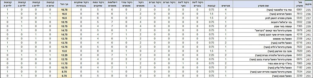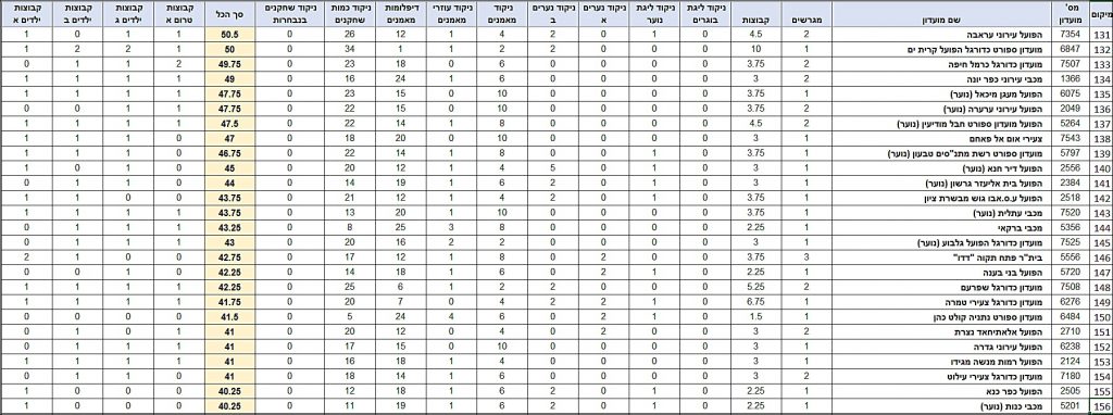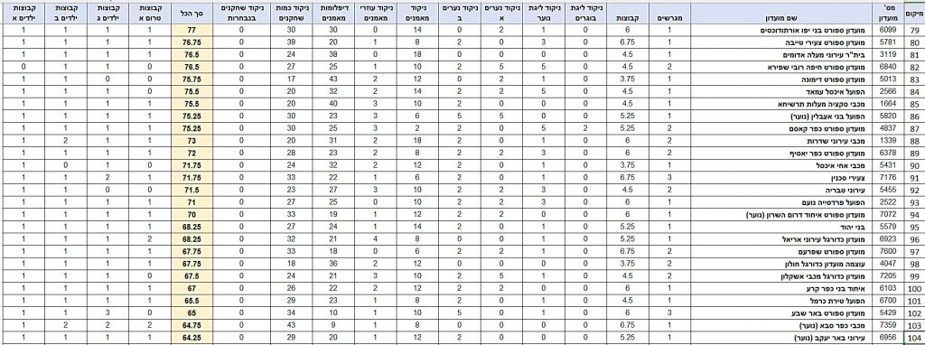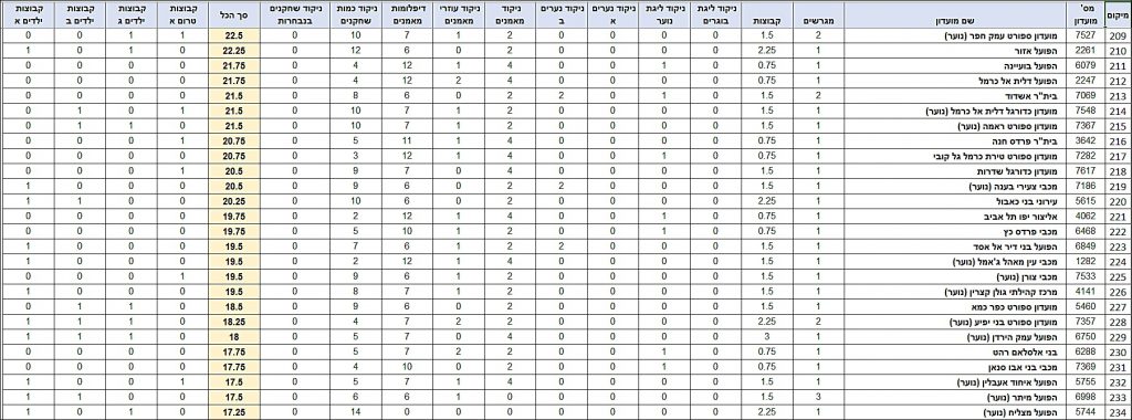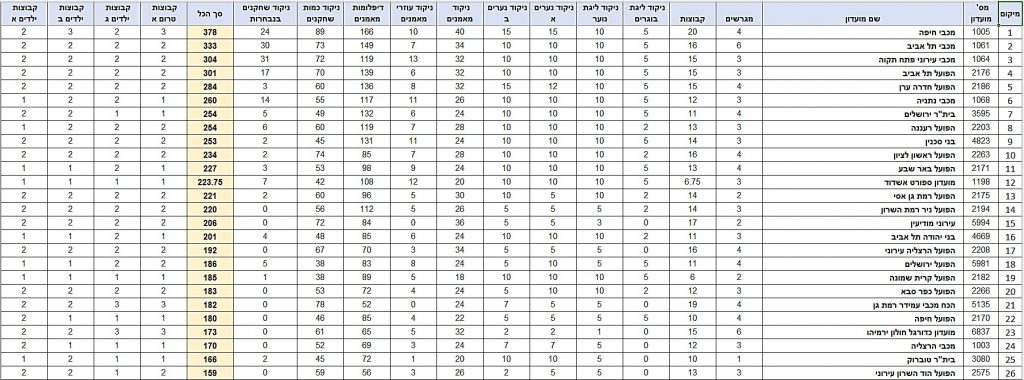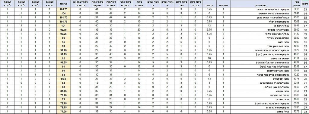 טבלת דירוג לקראת עונת 22/23