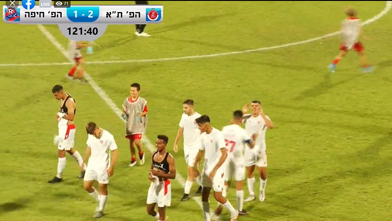 דקה מפתיחת ההארכה הפועל ת"א השלימה את המהפך. כדור ארוך על 40 מטרים של ליאו בנבניסטי, שגיא גניס עצר את הכדור על החזה ובסיבוב שלח את הכדור לפינה הגבוהה – 2:1 להפועל ת"א. הפועל ת"א חולפת על פניה של הפועל חיפה בדרך לדרבי תל-אביבי בגמר הגביע שייערך ב-16/6.